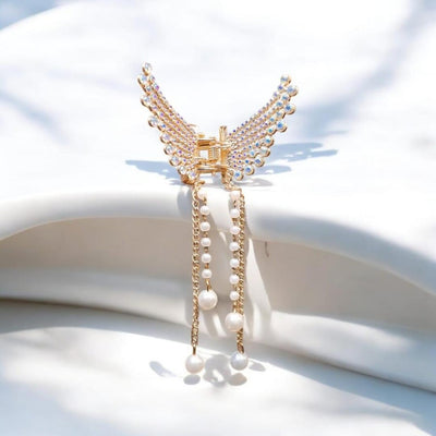 Elegant Gold Plated Butterfly Design Hair Claw with Crystal and Pearl - 1 Pc