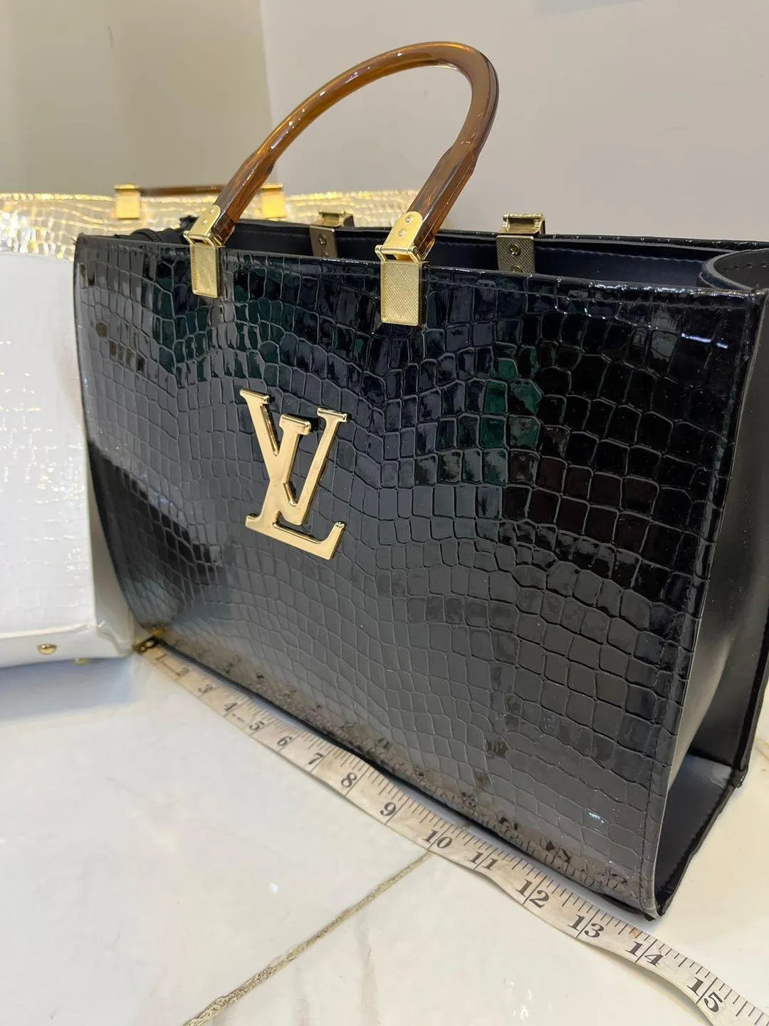 • LV Handbag Crocodile Material Supreme Quality Bag with Long Belt & with Acrylic Handle & Inside Zipper Pocket